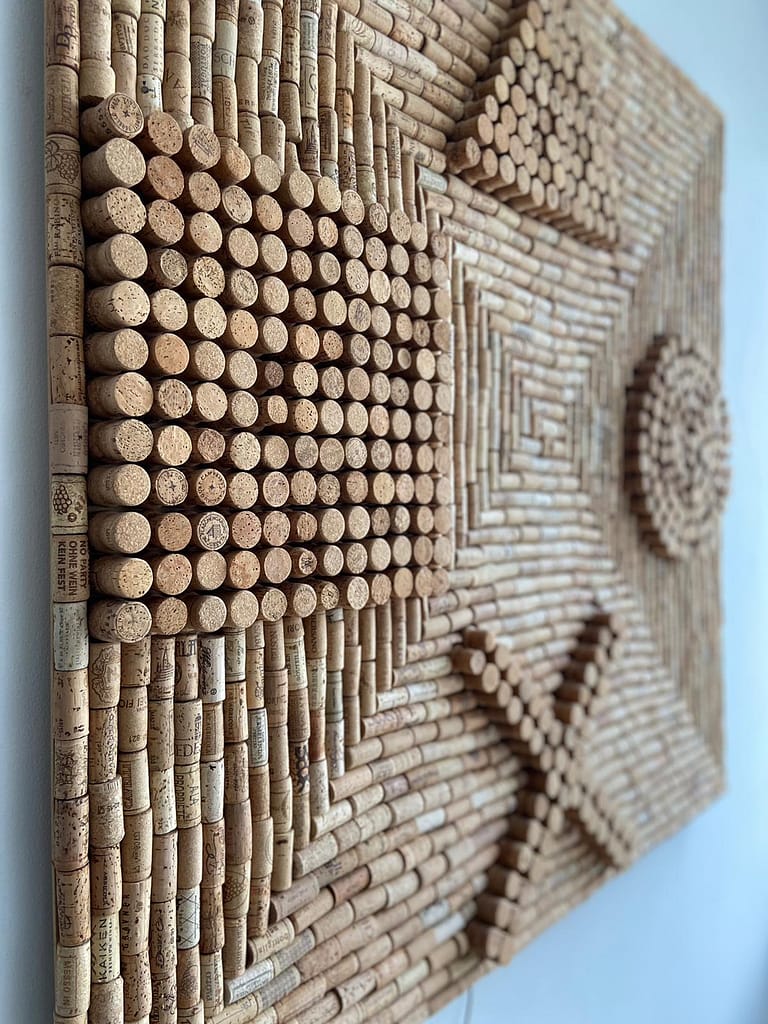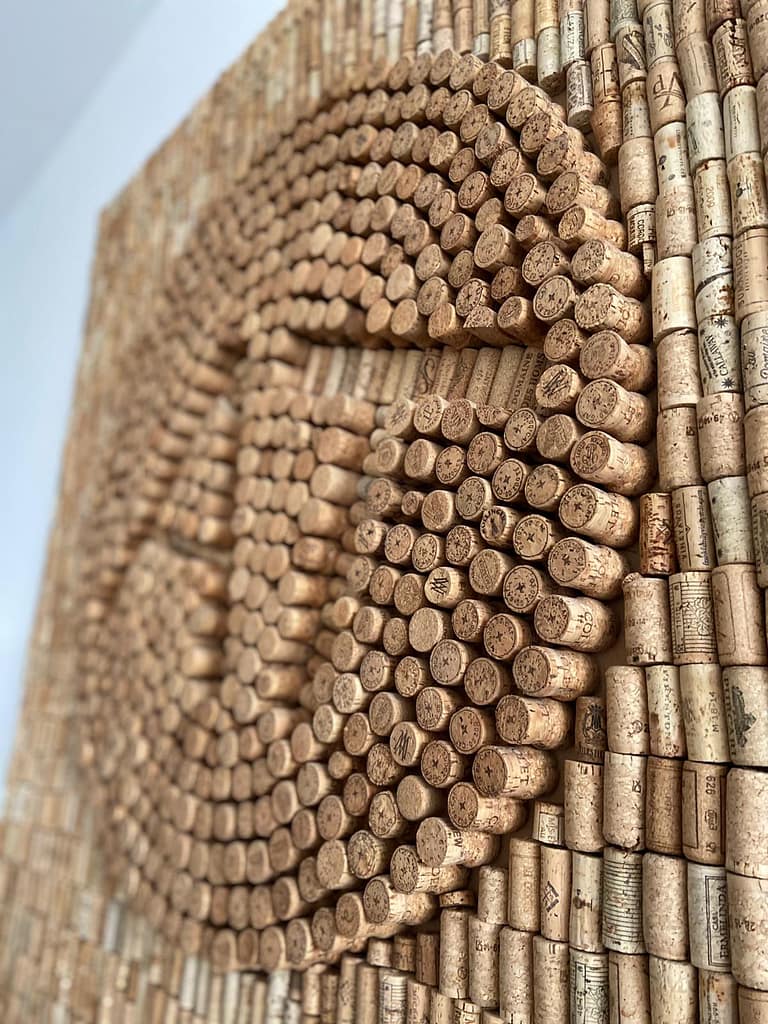 Each artwork has an unique combination between champagne and wine corks that represents the perfect marriage, a predestined union of different stories that the artist wants to emphasize.